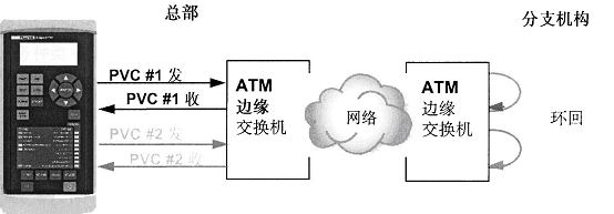 永久虛電路(PVC)上的端到端測試能夠通過兩種方法來完成。第一,將測試儀接在PVC通道的兩端進(jìn)行兩次測試,兩臺測試儀分別作為流量的發(fā)送和接收端。這一方法的好處是可以對PVC通道的兩個方向分別進(jìn)行測試。