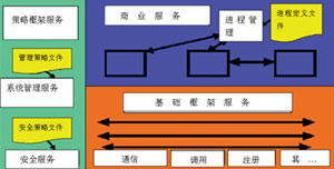 如下圖所示,NGOSS系統(tǒng)由松散耦合的商業(yè)服務(wù)組件和框架服務(wù)集合而成,商業(yè)服務(wù)是依靠執(zhí)行框架服務(wù)組件集合來支持的,以達(dá)到“即插即用”的要求。各組件的接口采用合約表示,與具體的技術(shù)實現(xiàn)無關(guān)。