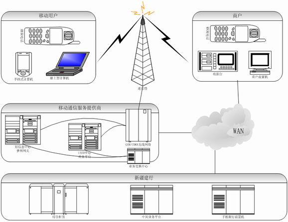 2) 商戶(hù):可以移動(dòng)終端或聯(lián)網(wǎng)的商戶(hù)款臺(tái),接受移動(dòng)客戶(hù)支付的結(jié)果。