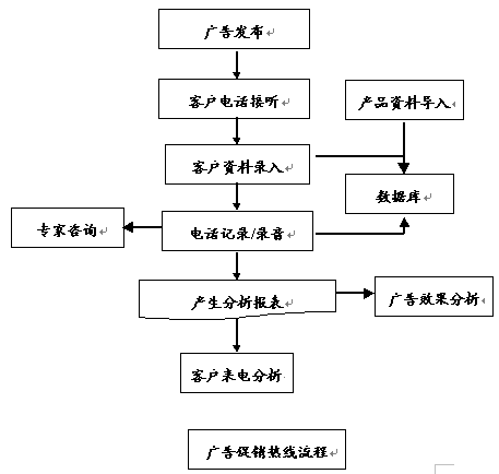 廣告熱線是在呼叫中心系統(tǒng)中設立專欄,為廣告中的產品或服務提供更詳細的資料。首先應將需要在廣告中出現的詳細內容或不適合在廣告中出現的內容按照要求導入呼叫中心系統(tǒng),準備就緒后,就在媒體或其他介質上做廣告,其中廣告的內容中含廣告熱線號碼。電話號碼建議采用800電話,以提高客戶撥打電話的積極性。呼叫中心會記錄打進的每一個電話,并且提供完成的系統(tǒng)報表。這樣可以彌補廣告中提供給消費者內容不足的缺陷,另一方面可以根據電話量判斷廣告的效果。