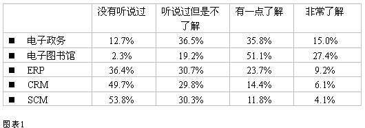7%被采訪者表示對(duì)CRM軟件“非常了解”,17%表示對(duì)CRM軟件“了解”,36%的表示“一般了解”,30%表示“不了解”,10%表示“非常不了解”。