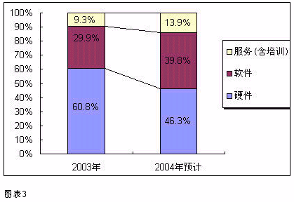 大型企業(yè)軟件投入比例將從2003年占總體投資額的29.9%、2004年增長(zhǎng)到39.8%;