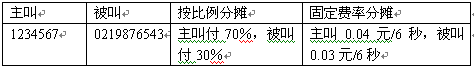 根據(jù)主叫用戶和被叫用戶之間的的關(guān)系,主叫用戶產(chǎn)生的通話費由主叫和被叫協(xié)商好的原則共同承擔(dān)。例6。