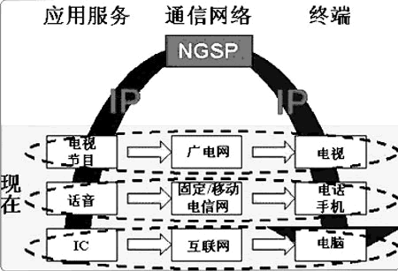 完全融合方式 完全融合的典型技術(shù)解決方案是目前業(yè)界普遍關(guān)注的焦點(diǎn)—NGN(下一代網(wǎng)絡(luò))。NGN的核心思路是重新生產(chǎn)和建立符合標(biāo)準(zhǔn)的服務(wù)、網(wǎng)絡(luò)和終端,徹底取代原有相對(duì)獨(dú)立的應(yīng)用服務(wù)、通信網(wǎng)絡(luò)和終端。由于技術(shù)標(biāo)準(zhǔn)制定復(fù)雜,網(wǎng)絡(luò)設(shè)備投資巨大,實(shí)施周期過長等因素,實(shí)現(xiàn)起來困難較大。