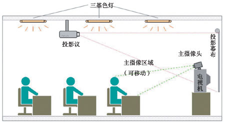 為了確保圖像的觀看效果和防止顏色對(duì)人物攝像產(chǎn)生的“奪目”或“反光”效應(yīng),背景墻應(yīng)采取單一均勻的淺顏色(但不宜用白色),使其產(chǎn)生的視頻信號(hào)電平近似0.35V,而會(huì)議室其他墻壁、桌布、地毯、天花板等應(yīng)與背景墻相匹配,攝像背景不宜使用畫幅。建議桌椅及墻壁采用淺駝色或淺青藍(lán)色,否則將增加攝像對(duì)象的信息量,不利于圖像質(zhì)量的提高。椅子不宜采用沙發(fā)式,也不宜采用高靠背,避免擋住后面的與會(huì)者。