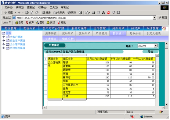 本系統(tǒng)通過對(duì)本地計(jì)費(fèi)帳務(wù)系統(tǒng)、網(wǎng)間結(jié)算系統(tǒng)、1000號(hào)客戶服務(wù)系統(tǒng)、“九七工程”系統(tǒng)、資源管理系統(tǒng)的動(dòng)態(tài)相關(guān)數(shù)據(jù)的提取,按日(天)記錄并分析開展?fàn)I銷服務(wù)工作所需的客戶基本資料、客戶關(guān)系資料、客戶收入信息、客戶消費(fèi)行為信息、客戶變動(dòng)信息、客戶障礙信息、客戶投訴信息、客戶競(jìng)爭(zhēng)動(dòng)態(tài)信息等支撐信息,指導(dǎo)各類客戶經(jīng)理開展有針對(duì)性營(yíng)銷服務(wù)工作。