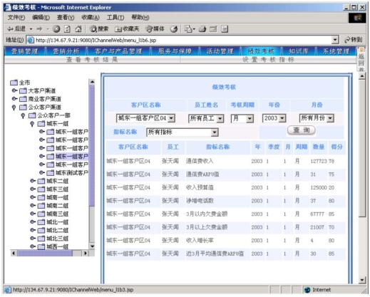 作為電信營(yíng)銷服務(wù)支撐系統(tǒng),其主要功能是支撐營(yíng)銷人員開展?fàn)I銷活動(dòng),并通過功能完善的考核系統(tǒng)幫助各級(jí)人員進(jìn)行工作管理。本系統(tǒng)可以對(duì)KPI指標(biāo)進(jìn)行靈活的設(shè)定,可以靈活定義多種參與考核的數(shù)據(jù)來(lái)源,使得各級(jí)主管能夠?qū)蛻艚M、社區(qū)(商業(yè)客戶區(qū)、農(nóng)村統(tǒng)包區(qū))的營(yíng)銷服務(wù)工作進(jìn)行考核評(píng)分?己酥芷诳梢酝ㄟ^參數(shù)進(jìn)行設(shè)定(一般以月為單位)。