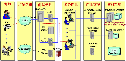 利用網(wǎng)路平臺(tái)在整合加入多項(xiàng)服務(wù),如寬頻電話咨詢﹙ADSL﹚、數(shù)據(jù)電路、智慧型網(wǎng)路(IN) 、及查號(hào)加值服務(wù)(1288)等業(yè)務(wù)使本系統(tǒng)展現(xiàn)更優(yōu)異之功能。