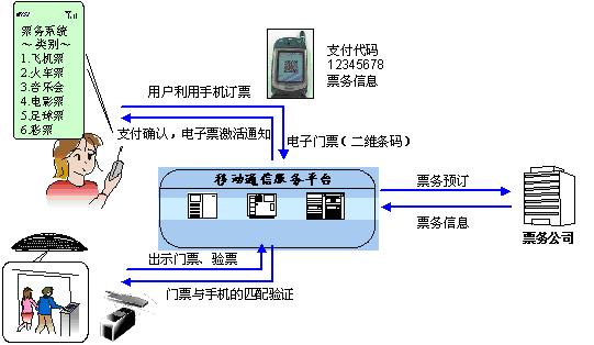 何謂手機(jī)條碼?手機(jī)條碼是以手機(jī)短信的方式將條碼發(fā)送到手機(jī)上并顯示在手機(jī)液晶屏幕上的條碼新形式。這是一種快速便捷的以確認(rèn)使用者身份為目的的無(wú)紙化掃描新形式,通過(guò)條碼閱讀設(shè)備對(duì)手機(jī)條碼的閱讀來(lái)獲取相應(yīng)的信息,從而方便的確認(rèn)使用者的身份。它可以被廣泛應(yīng)用于網(wǎng)絡(luò)購(gòu)物、電子票據(jù)、會(huì)員卡、電子支付等領(lǐng)域,為這些領(lǐng)域健康快速的成長(zhǎng)和發(fā)展提供了新的推進(jìn)作用。鑒于信息量在此類應(yīng)用中有比較大的需求,故現(xiàn)在此項(xiàng)目中用的是二維條碼,且以QR,DataMatrix居多。項(xiàng)目實(shí)施過(guò)程中涉及到的硬件設(shè)備包括手機(jī)(需要支持WAP服務(wù))和手機(jī)條碼閱讀器。手機(jī)通過(guò)訪問(wèn)移動(dòng)通訊平臺(tái),獲取電子門(mén)票信息,同時(shí)移動(dòng)通訊平臺(tái)根據(jù)手機(jī)驗(yàn)證信息反饋給手機(jī)一個(gè)電子二維條碼。當(dāng)觀眾觀看電影時(shí),在檢票處出示手機(jī)上的二維條碼,系統(tǒng)通過(guò)條碼閱讀器識(shí)讀條碼信息并對(duì)信息進(jìn)行驗(yàn)證,驗(yàn)證通過(guò)后系統(tǒng)將從手機(jī)賬戶上自動(dòng)扣取相關(guān)費(fèi)用。利用手機(jī)條碼實(shí)現(xiàn)對(duì)大型活動(dòng)門(mén)票的管理,將使票務(wù)系統(tǒng)得到安全保障,同時(shí)也會(huì)提高極大的提高票務(wù)管理工作的效率,降低票務(wù)成本,提升客戶服務(wù)質(zhì)量。