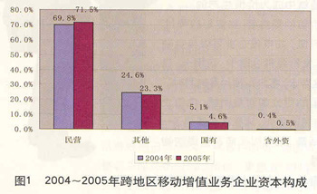 電信市場的開放吸引了大量中小企業(yè),而他們進入的領(lǐng)域也大多集中在增值服務(wù)市場。目前,中國的電信增值服務(wù)市場的各類中小企業(yè)已達到上萬家,業(yè)務(wù)范圍幾乎涉及全部增值領(lǐng)域,成為通信經(jīng)營服務(wù)業(yè)務(wù)的重要組成部分。在1.4萬家電信增值企業(yè)中,民營企業(yè)比例占到55.37%,民營資本已經(jīng)成為該市場的主體。