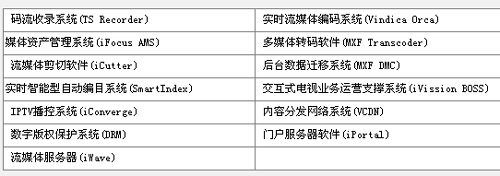 提供重慶網(wǎng)通IPTV系統(tǒng),其中包括所有數(shù)字節(jié)目內(nèi)容的制作、管理、發(fā)布平臺,用戶通過IPSTB實現(xiàn)在TV上的點播、直播等業(yè)務。