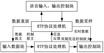 RTP是針對實時多點多媒體會議而設計的實時傳輸協(xié)議,它提供了端到端的實時媒體(交互式音頻和視頻)傳輸服務。RTP是運行在UDP上的傳輸層協(xié)議,以便利用UDP的多路復用、檢查和服務。然而RTP也可以和其他適當?shù)南聦泳W(wǎng)絡和傳輸層一起使用。RTP本身不能提供任何保證及時提交的機制,也不提供其他服務質(zhì)量(QoS)的保證,而是依靠下層服務完成這些任務。它既不保證提交,也不防止錯序提交,還不假設下層基礎網(wǎng)絡可靠而且按序提交分組。RTP當中包含的順序號允許接收方重建發(fā)送方分組序列,但是,在視頻解碼中,順序號也可能用于確定分組的適當位置,從而不必按序解碼分組。RTP的應用框圖如圖6所示。