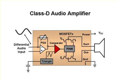 在音頻解決方案中進行折衷與音頻處理性能、音頻輸出功率、熱耗散和整體的功耗有關(guān)。傳統(tǒng)的音頻方案由兩到三個受AB類音頻功率放大器驅(qū)動的揚聲器構(gòu)成。然而,相對于它的整個音頻輸出而言,AB類放大器的工作固有地生成大量的熱。這些積聚起來的高溫因為需要大的散熱片來散發(fā)熱量,所以,在大多數(shù)薄形狀因子的平面電視中禁止采用AB類放大器。為了解決這個問題,業(yè)界采用了D類放大器技術(shù)(圖3)。目前,輸出場效應三極管(FET)可以在截止區(qū)與飽和區(qū)之間切換,從而提供比AB類放大器更高的效率,F(xiàn)有的音頻解決方案容許你完全利用數(shù)字信號路徑。這不僅僅最大化音頻效率,而且,它們也提供有效的處理和大于110dB的信噪比(SNR)。