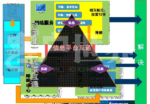 在這個(gè)里面,我講一下聯(lián)想初步探索的結(jié)果。其實(shí)我們說客戶的需求會(huì)從幾個(gè)維度上展開,在我們的技術(shù)服務(wù)中,客戶當(dāng)有問題的時(shí)候,他可能有一種希望,比如說我家門口剛好有一個(gè)維修站,我可能習(xí)慣性地有點(diǎn)問題就自己走到哪兒去,說我有這樣的問題,能不能幫我解決掉?當(dāng)然是這樣一種面對(duì)面的服務(wù)是更徹底一點(diǎn)。還有一些硬性固件,比如說一個(gè)電腦的主板壞掉了,那打電話是不能解決的,你肯定是要面對(duì)面服務(wù)的,所以這是一種服務(wù)的形式。在我們的客戶聯(lián)絡(luò)中心會(huì)在這個(gè)地方,其實(shí)更多的是怎么在電話端一次解決掉這個(gè)問題,能夠在這個(gè)地方發(fā)力。另外一點(diǎn)大家最常用的是打電話的形式,現(xiàn)在在我們打電話的內(nèi)容中會(huì)有兩大部分,一類是技術(shù)支持類,另外一類是業(yè)務(wù)保修類。針對(duì)這部分,我在后面保持專業(yè)性中會(huì)提到,在這個(gè)地方會(huì)有強(qiáng)大知識(shí)庫的管理系統(tǒng),然后來保證所有的一線員工能夠得到豐富知識(shí)的一致性。另外一點(diǎn)我會(huì)用一種組織結(jié)構(gòu)來保證,他派出的信息或者給出的解決方案能夠是非常非常準(zhǔn)確的,能夠去滿足客戶需求的。