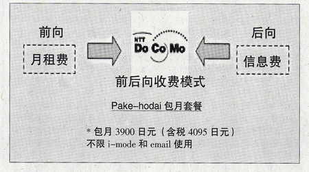 當然,移動互聯(lián)網(wǎng)運營不僅可以前向向用戶收費,還可以采取后向的廣告收費模式,如圖NTT DoCoMo的數(shù)據(jù)業(yè)務資費模式: