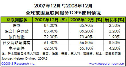 2008年互聯(lián)網(wǎng)服務排名顯示 社交網(wǎng)絡與博客發(fā)展最快