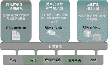 從運營商內容需求看,對信息的監(jiān)控、報告、審計,可以有效簡化IT審計和法規(guī)遵從,并提高信息安全級別,以及優(yōu)化IT系統及網絡運維。電信運營商應對國內外法規(guī)遵從的需求不斷增長,如國內的內控法案,國際的薩班斯法案。這些法案往往會給企業(yè)帶來重復的投入或負擔,RSA enVision可以大大減輕企業(yè)在法規(guī)遵從方面的投入,該平臺把國際上常見的審計法案都已經內置里面,它可以自動地做審計,不需要再手工地搜集審計證據。
