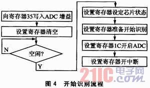 、坶_始識別。設(shè)置幾個(gè)相關(guān)的寄存器,即可開始語音的識別。圖4是相關(guān)的流程。ADC通道即為麥克風(fēng)輸入通道,ADC增益也就是麥克風(fēng)音量,可設(shè)定值00H~7FH,建議設(shè)置值為40H~6FH,值越大代表MIC音量越大,識別啟動(dòng)越敏感,但可能帶來更多誤識別;值越小代表MIC音量越小,需要近距離說話才能啟動(dòng)識別功能,好處是對遠(yuǎn)處的干擾語音沒有反應(yīng)。本文中設(shè)定值為43H。