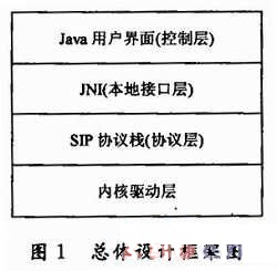 本方案所設計的系統(tǒng)包含以下功能:首先,完成用戶終端(如手機)中語音數(shù)據(jù)的采集與編碼,并通過RTP(實時傳輸協(xié)議)/RTCP(RTP傳輸控制協(xié)議)進行傳輸和控制;其次,完成會話的控制,包括會話的注冊、發(fā)起、維護與結束、注銷等;再次,作為一個應用程序,必須實現(xiàn)一個良好的界面,與用戶交互;最后,作為一個開放系統(tǒng),需具有良好的可擴展性。