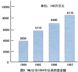 ——該公司成立于1992年,現在是日來第4大電話營銷專業(yè)公司。該公司是從原福武書店的電話中心獨立出來的。福武書店的”進研學習會”(類似于中國的函授大學)在日本全國擁有401萬會員。對這些會員的客戶服務目前占TMJ業(yè)務的50%,盡管TMJ成立時間不長。但由于積極引進先進技術(CTI,IVR,ACD,預撥號)和先進的管理方式,發(fā)展非常迅猛。1997年營業(yè)額達到81億7千萬日元,總席位有1,500個,外線數3,00O條,登錄業(yè)務代表達4,350人,該公司擁有6個呼叫中心(東京3個,大販、名古屋、岡山各1個),每月平均呼入電話63萬個,呼出電話60萬個。該公司的主要業(yè)務有:訂購、預約受理、促銷活動、銷售支持、客戶服務中心,其中面向消費者/面向企業(yè)的比例為4∶1。圖6為TMJ公司1994年以來的營業(yè)額。