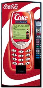 在澳大利亞,澳大利亞電訊和可口可樂公司聯(lián)合發(fā)布了一項(xiàng)新業(yè)務(wù)的試運(yùn)營:“撥打可口可樂”。這項(xiàng)新業(yè)務(wù)使該公司的后付費(fèi)移動(dòng)電話客戶可以使用他們的GSM移動(dòng)電話,在可口可樂售貨機(jī)上購買他們喜愛的飲料。這次試驗(yàn)在悉尼中央車站的17臺可口可樂售貨機(jī)上進(jìn)行。
