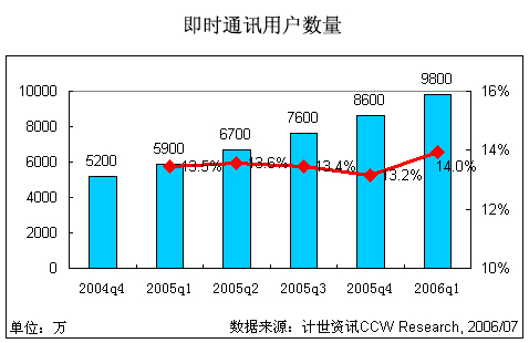 2006第一季度中國(guó)即時(shí)通訊用戶數(shù)接近1億