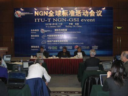 2007年1月8日至12日,中國(guó)通信標(biāo)準(zhǔn)化協(xié)會(huì)與信息產(chǎn)業(yè)部電信研究院共同在北京承辦了ITU-T NGN GSI(Global Standard Initiative)會(huì)議。來自中國(guó)、北美、歐洲和東南亞等國(guó)家的218位代表參加了此次會(huì)議。