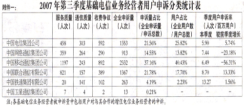 為加強社會監(jiān)督,推進電信服務質量持續(xù)改善,根據(jù)《中華人民共和國電信條例》相關規(guī)定,現(xiàn)將2007年第三季度電信服務質量有關情況公布如下。