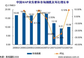 中國WAP業(yè)務(wù)整體市場規(guī)模及環(huán)比增長率