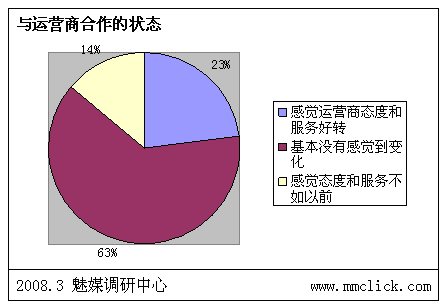 魅媒無(wú)線調(diào)研中心認(rèn)為:由于前期政府以及運(yùn)營(yíng)商對(duì)SP行業(yè)的相關(guān)整頓效果明顯,相關(guān)的制度、措施以及管理系統(tǒng)上線后,SP違規(guī)的風(fēng)險(xiǎn)已經(jīng)越來(lái)越大,行業(yè)自律狀態(tài)較之前有明顯的改善。但是由于部分的制度明顯存在矯枉過(guò)正現(xiàn)象,不少的措施嚴(yán)重影響到用戶的體驗(yàn),而且對(duì)SP管理一直出于消極的狀態(tài),需要不斷調(diào)整。