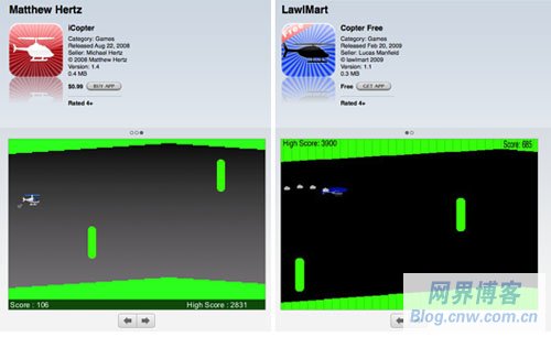 iCopter ,那么你也會(huì)喜歡免費(fèi)的 Copter 。” 甚至還有與之對(duì)應(yīng)的另一種情況,開(kāi)發(fā)者抄襲一個(gè)免費(fèi)應(yīng)用,然后把它做成付費(fèi)版——