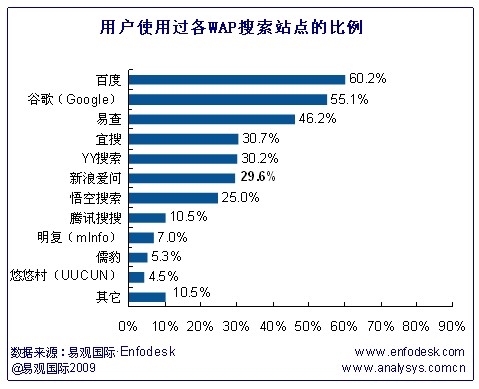 易觀Enfodesk:WAP搜索站點(diǎn)呈梯型競爭局面