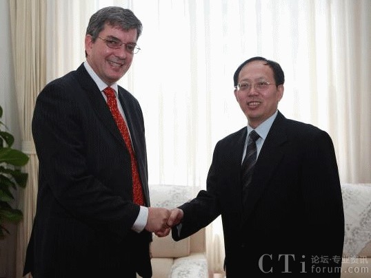 CTI論壇(ctiforum)09月04日消息: 近日,北京市副市長茍仲文在北京市政府會見Research In Motion (RIM)公司新上任的中國區(qū)總裁謝國睿(Gregory Shea), 席間謝國睿對於RIM公司中國有限公司在中國正式成立,表示十分欣喜。