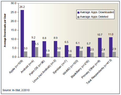 除了應(yīng)用程序下載之外,In-Stat也追蹤應(yīng)用程序的實際使用情況,發(fā)現(xiàn)用戶時常在下載某個程序但覺得不感興趣后,就把它刪除了,尤其是免費的應(yīng)用程序。