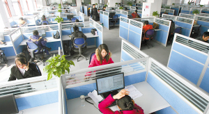 數(shù)百個(gè)人發(fā)出不同的聲音,使得整個(gè)房間都浸在一個(gè)音頻的嘈雜環(huán)境里。每一個(gè)客服代表都在說(shuō)話,各種各樣的問題,他們都會(huì)在電腦上找到專業(yè)的解答。電話太多,客服與客服之間,幾乎沒有交頭接耳的討論和接送文件的交流。