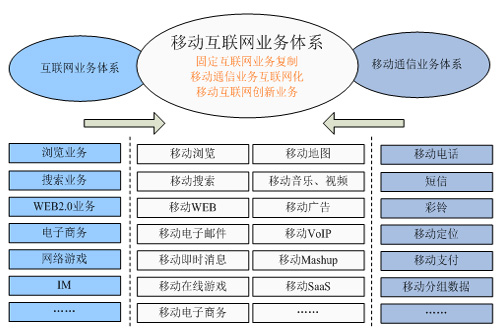 根據(jù)工信部相關(guān)信息,移動互聯(lián)網(wǎng)的業(yè)務(wù)體系主要包括三大類,如下圖所示:一是固定互聯(lián)網(wǎng)的業(yè)務(wù)向移動終端的復(fù)制,從而實(shí)現(xiàn)移動互聯(lián)網(wǎng)與固定互聯(lián)網(wǎng)相似的業(yè)務(wù)體驗(yàn),這是移動互聯(lián)網(wǎng)業(yè)務(wù)的基礎(chǔ)。二是移動通信業(yè)務(wù)的互聯(lián)網(wǎng)化,如Skype推出的移動VOIP業(yè)務(wù)、中國移動的飛信業(yè)務(wù)等。三是結(jié)合移動通信與互聯(lián)網(wǎng)功能而進(jìn)行的有別于固定互聯(lián)網(wǎng)的業(yè)務(wù)創(chuàng)新,這是移動互聯(lián)網(wǎng)業(yè)務(wù)發(fā)展方向。對創(chuàng)業(yè)者而言,移動互聯(lián)網(wǎng)的業(yè)務(wù)創(chuàng)新關(guān)鍵是如何將移動通信的網(wǎng)絡(luò)能力與互聯(lián)網(wǎng)的網(wǎng)絡(luò)與應(yīng)用能力進(jìn)行聚合,從而創(chuàng)新出適合移動終端的互聯(lián)網(wǎng)業(yè)務(wù),如移動Web2.0業(yè)務(wù),如微博、移動位置類互聯(lián)網(wǎng)業(yè)務(wù)等。