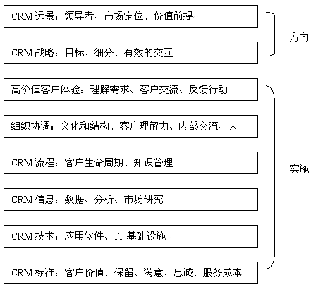 對于大多數(shù)公司而言,一個(gè)產(chǎn)品戰(zhàn)略很好理解。但是CRM戰(zhàn)略卻不太讓人理解。這是因?yàn)樵贑RM產(chǎn)業(yè)界、學(xué)術(shù)界對"CRM是什么"、"CRM戰(zhàn)略由什么組成"還沒有達(dá)成共識。因此,以下所闡述的CRM戰(zhàn)略并不一定勝人一籌,但我們會努力全面論述CRM戰(zhàn)略框架。我們認(rèn)為一個(gè)CRM戰(zhàn)略必須包括以下幾個(gè)內(nèi)容:定義價(jià)值前提、定義客戶戰(zhàn)略、企業(yè)變革計(jì)劃。