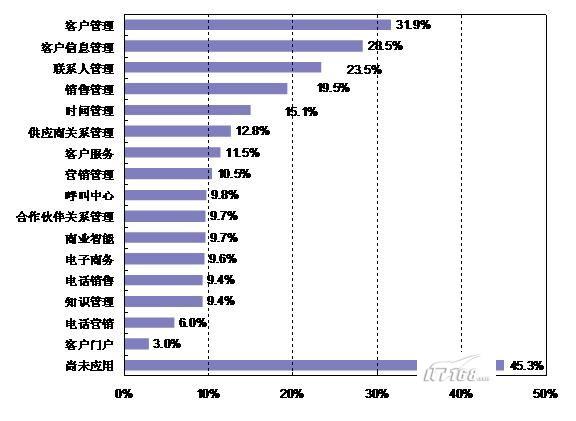 與2006年相比CRM市場前景依然廣闊,企業(yè)應(yīng)用依然集中在客戶管理,客戶信息管理,聯(lián)系人管理等主要的應(yīng)用領(lǐng)域,品牌認知度上,與2006年的數(shù)據(jù)沒有太大的變動。