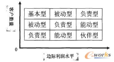 這5種類型之間并不具有簡單的優(yōu)劣對比或順序,因為企業(yè)所采用的客戶關系類型取決它的產品以及客戶的特征,不同企業(yè)甚至同一企業(yè)在對待不同客戶時,都有可能采用不同的客戶類型。一家生產日用化妝品的企業(yè),與它的化妝品消費者個人之間常會建立一種被動型的客戶關系,企業(yè)設立的客戶服務機構或聯絡中心將聽取客戶的意見,處理客戶投訴以及改進產品;但這家企業(yè)同大型超市或零售企業(yè),同連鎖的美容產業(yè)機構之間,?赡芙⒁环N伙伴型的客戶關系,實現產銷企業(yè)之間的互惠互利?铺乩仗岢,企業(yè)可以根據其客戶的數量以及產品的邊際利潤水平,根據圖3指示的思路,選擇合適的客戶關系類型。