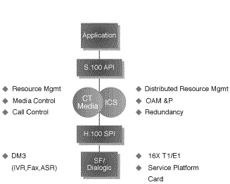 Sigma計(jì)劃的硬件平臺(tái)支持H.110的cPCI(CompactPCI)總線。媒體處理通過配置Dialogic高密度的DM3TM硬件來操作,它提供諸如自動(dòng)語音識(shí)別、傳真、互聯(lián)網(wǎng)語音和編碼、以及交互式語音應(yīng)答功能。Summa Four通過集成它的接口控制卡(ICC)來提供高密度的網(wǎng)絡(luò)接口,最大可支持16個(gè)T1/E1。另外,服務(wù)資源設(shè)備,如信令、號(hào)音生成、會(huì)議、編解碼、以及互聯(lián)網(wǎng)語音轉(zhuǎn)換等,將通過Summa Four的服務(wù)平臺(tái)卡(SPC)支持,它最多可有32個(gè)DSP。ICC和SPC均可由Summa Four的VCO產(chǎn)品家族支撐。通過H.110總線,任何與標(biāo)準(zhǔn)兼容的制造商制造的硬件組件都能輕易的加入到平臺(tái)中。
