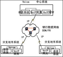 語音聯(lián)網(wǎng)可以由多個地市系統(tǒng)組成,同時可以將Voice Over IP聯(lián)網(wǎng)的關(guān)守設(shè)立在中心系統(tǒng)或其中的某一個地市,地市之間的語音聯(lián)網(wǎng)的數(shù)據(jù)通道可以利用銀行現(xiàn)有的數(shù)據(jù)網(wǎng)絡(luò)來支持,并根據(jù)需要分配帶寬。