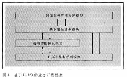 。龋矗担暗囊粋(gè)強(qiáng)項(xiàng)是它可以使用多級(jí)方式開發(fā)附加業(yè)務(wù);緲I(yè)務(wù)由構(gòu)件或原語組成,由基本業(yè)務(wù)可開發(fā)更復(fù)雜的業(yè)務(wù)。復(fù)合業(yè)務(wù)由兩個(gè)或更多個(gè)基本業(yè)務(wù)組成。應(yīng)用程序通過API接口使用基本業(yè)務(wù)和復(fù)合業(yè)務(wù)為用戶提供多媒體業(yè)務(wù)。H.450附加業(yè)務(wù)體系為該類業(yè)務(wù)提供了信令方式和標(biāo)準(zhǔn)構(gòu)件模塊。使用相似的方法,H.323將不但能提供基本的電話業(yè)務(wù)和附加業(yè)務(wù),而且能夠提供基于IP的增值業(yè)務(wù),如統(tǒng)一消息、呼叫分配、VPN和統(tǒng)一號(hào)碼業(yè)務(wù)。該業(yè)務(wù)開發(fā)模型體現(xiàn)了軟件重用的思想。