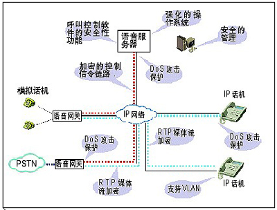 IP電話的各個組成部分從語音服務器、語音網關到IP電話都能夠對DoS攻擊具有相應的保護功能: