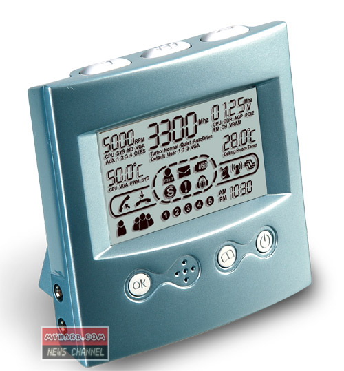 這個(gè)裝置,其實(shí)是一項(xiàng)早期工具的衍生產(chǎn)品。早在2004年,這個(gè)具有獨(dú)立顯示屏的小東西被開(kāi)發(fā)出來(lái),用以控制電腦的超頻設(shè)定并監(jiān)控系統(tǒng)的效能。現(xiàn)在這個(gè)在下周起于各大通路都買(mǎi)得到的新機(jī)種已納入Skype話務(wù)管理功能,使用者可直接把頭戴式耳機(jī)接到這個(gè)小時(shí)鐘上,one-touch輕輕一按,便可立即進(jìn)行接通電話、速簡(jiǎn)撥號(hào)及電話會(huì)議。