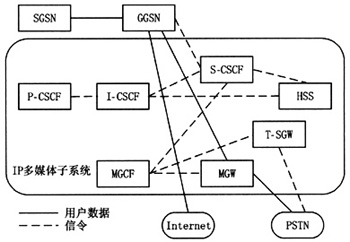 SIP信令消息從移動用戶發(fā)起,經(jīng)UMTS(universalmobiletelecommunicationssystem,通用移動通信系統(tǒng))陸地無線接入網(wǎng)絡進入核心網(wǎng),通過SGSN(serving