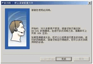 當(dāng)你15分鐘的訓(xùn)練全部結(jié)束后,將會(huì)看到如圖12所示的對話框,此時(shí)原來默認(rèn)的用戶配置文件將用剛才所收集的訓(xùn)練數(shù)據(jù)進(jìn)行更新,稍候片刻,你就會(huì)看到如圖13所示的對話框,告訴你語音訓(xùn)練已經(jīng)結(jié)束。