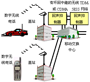 為了確保在一個(gè)本地?zé)o線到無(wú)線呼叫中包含有Studio Sound功能,回聲抑制器必須安裝在兩個(gè)附加位置之一。對(duì)于使用5ESS交換機(jī)的CDMA或TDMA移動(dòng)交換中心,這是通過(guò)環(huán)回中繼實(shí)現(xiàn)的,兩個(gè)回聲抑制器背靠背安裝在MSC內(nèi)交換機(jī)的兩個(gè)中繼上。對(duì)于GSM網(wǎng)絡(luò),回聲抑制器可以安裝在A接口上也就是MSC和基站之間的鏈路上,這些配置中的每一個(gè)都允許本地?zé)o線呼叫的兩側(cè)都獲得完整的Studio Sound功能集的好處。