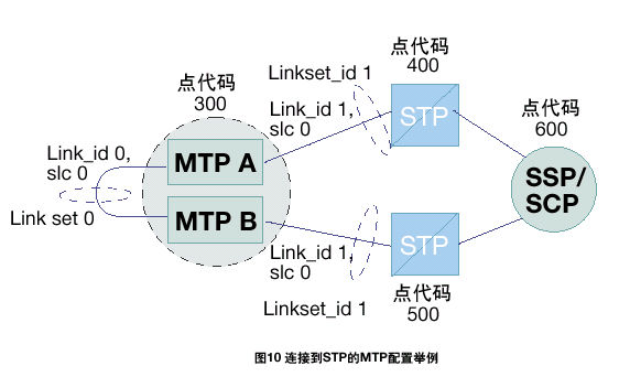 MTP A和MTP B之間的鏈路集的設(shè)置方法與任何其它SS7鏈路和鏈路集相同。如果有額外的數(shù)據(jù)設(shè)置表明此鏈路與其它連接相鄰節(jié)點的鏈路不同,則應(yīng)區(qū)別對待。