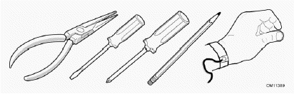 3. 將一小號(hào)平口螺絲刀的頂端或類似物件插入塑料護(hù)圈的薄片下,輕輕地向下壓螺絲刀將電池撬起來(lái);