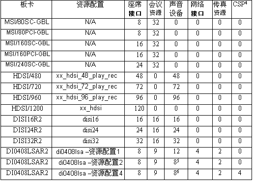 2.HDSI/1200不提供相關(guān)的聲音資源。D40408LSAR2為專(zhuān)用語(yǔ)音資源或路由聲音資源提供資源配置。
